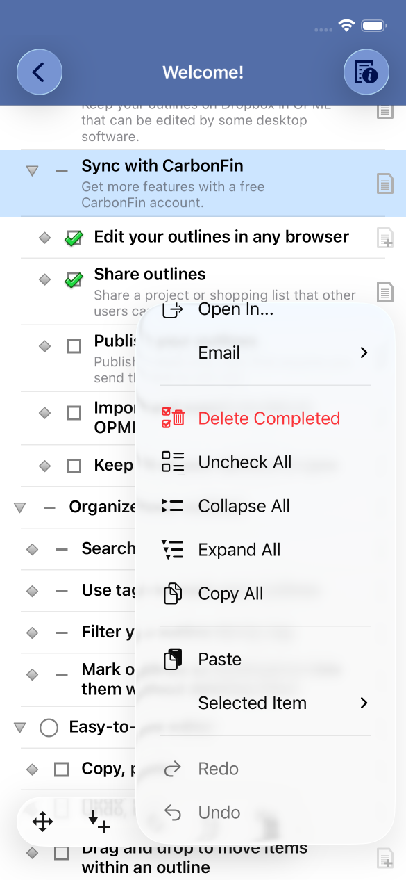 Outliner Online, the free online companion to CarbonFin Outliner.