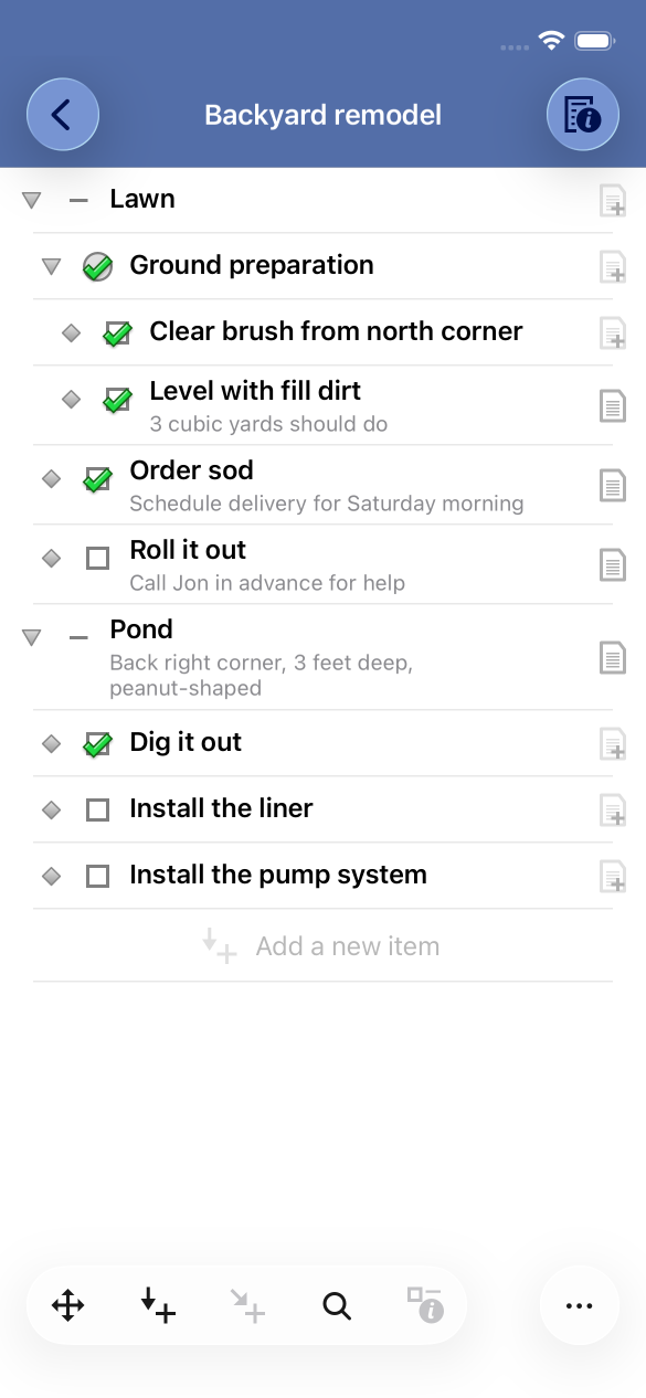 Just tap the checkbox to mark each one complete, or tap the pie chart next to