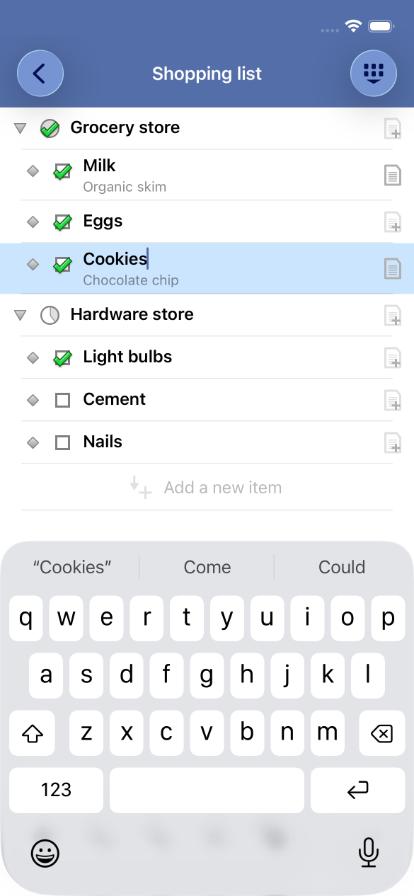 Outliner is great for task lists, such as a shopping list.